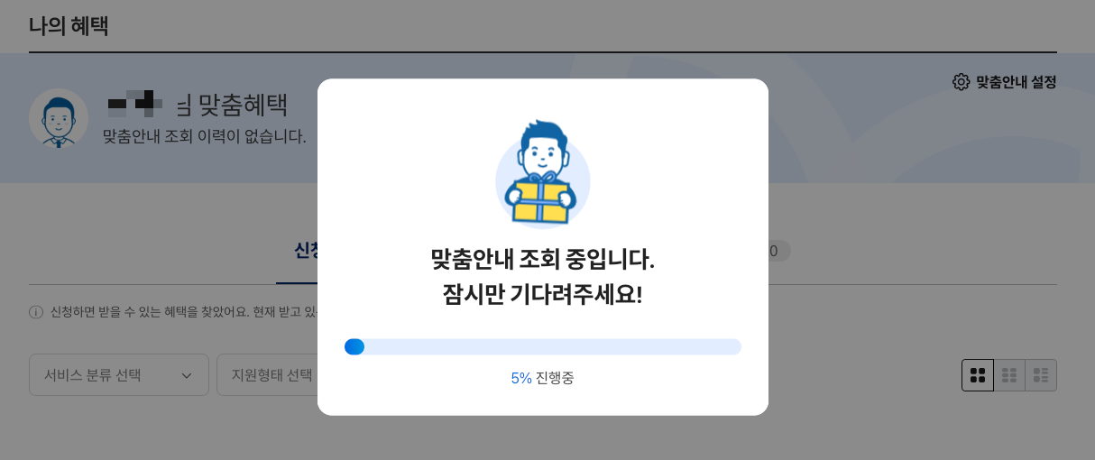 주민등록등본 발부 등 정부24에 편리한 서비스를 자주 사용하곤 했는데, 이렇게 보조금을 자동으로 찾아주는 서비스가 있었는지는 몰랐네요. 이왕 들어와본김에 내 보조금 찾기를 진행해보았습니다.